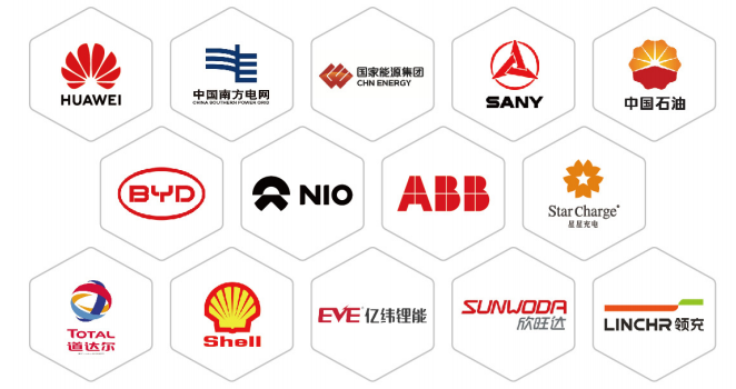 国家能源集团、宁德时代、中国石油、中国中车集团、时代聚能、耶书伦、易特智行、深圳能源、华能、华电、中广核、大唐电信、东方电气、中海油、驴充充、华为、中兴、三一、比亚迪、蔚来、南方电网、星星充电、ABB、道达尔、亿纬锂能、领充、奥特迅、盛弘、英飞源、欣旺达、壳牌等...(排名不分先后)