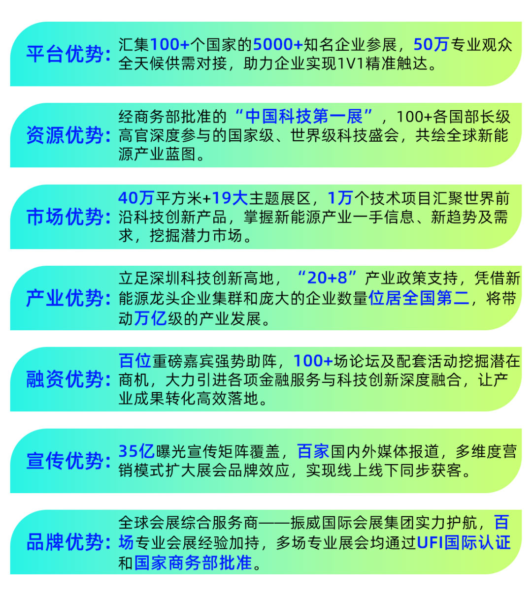 智慧电力与数字能源展区作为本届高交会重点板块,依托深圳世界创新之城的战略优势,正在加速打造全球数字能源技术创新策源地与清洁能源高端装备制造的产业高地。通过聚焦能源重大技术装备攻关与推广应用,全面展示智慧电力与数字能源全产业链的新产品、新设备、新技术、新服务及解决方案,促进水、风、光、储、氢等清洁能源生态链各领域的深度融合与发展,]助力企业开拓市场,推动能源产业的高质量发展。